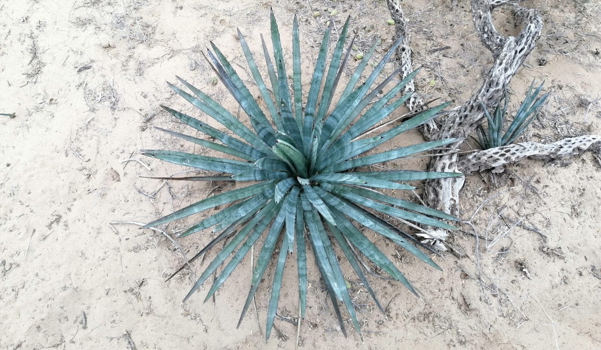 Seltene sukkulente Pflanze, die Rosetten aus linealischen, bläulich-grauen Blättern mit kurzen braunen Stacheln bildet; erreicht eine Höhe von 40 bis 70 cm und einen Durchmesser von 60 bis 110 cm; blüht nach mehreren Jahren mit einem bis zu 4 m hohen, aufrechten Blütenstand mit grünlich-gelben Blüten.