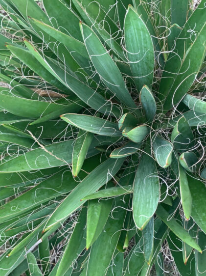 Schmal lanzettlich; 60 bis 120 cm lang und 4 bis 7,5 cm breit; in spiralförmigen Rosetten angeordnet